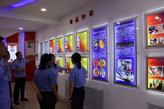 6月6日上午,三部門組織民警、檢察官及群眾代表走進松原市強制隔離戒毒所禁毒教育基地。在講解員的引導下,參觀者通過仿真毒品模型、VR體驗設備、禁毒歷史展板等,直觀了解毒品危害。一幅幅因吸毒導致家庭破碎的案例圖片,讓現場人員深受震撼?!坝绕涫强吹轿菊吣X部病變的對比圖,我才真正明白‘毀滅性’的含義?!币幻麉⒂^者感慨道。