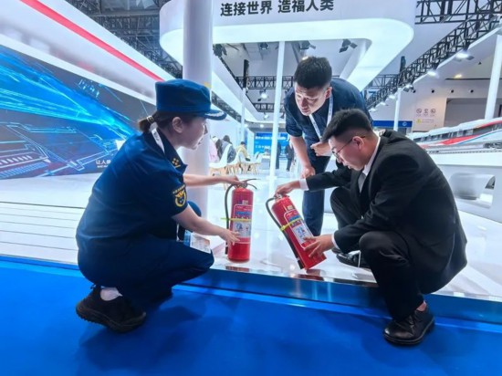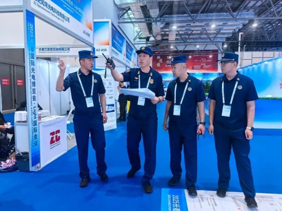 支隊成立由主要領導掛帥的消防安保領導小組,下設社會面防控、滅火救援等六大專項工作組,形成“統一指揮、分級負責、協同作戰”的高效指揮體系。布展階段(6月2日—9日),南部都市大隊2臺消防車定點駐守,朝陽大隊派駐3名監督員,會同9名展會專家對613個展位在布展過程中涉及電氣線路敷設、裝修材料使用等問題進行消防服務指導。展會期間,7輛執勤消防車按作戰預案嚴陣以待,23名執勤人員組成3個巡查小組,每日開展“地毯式”巡查,同步建立“隱患登記—限時整改—復查銷號”閉環管理機制,確保風險隱患動態清零。