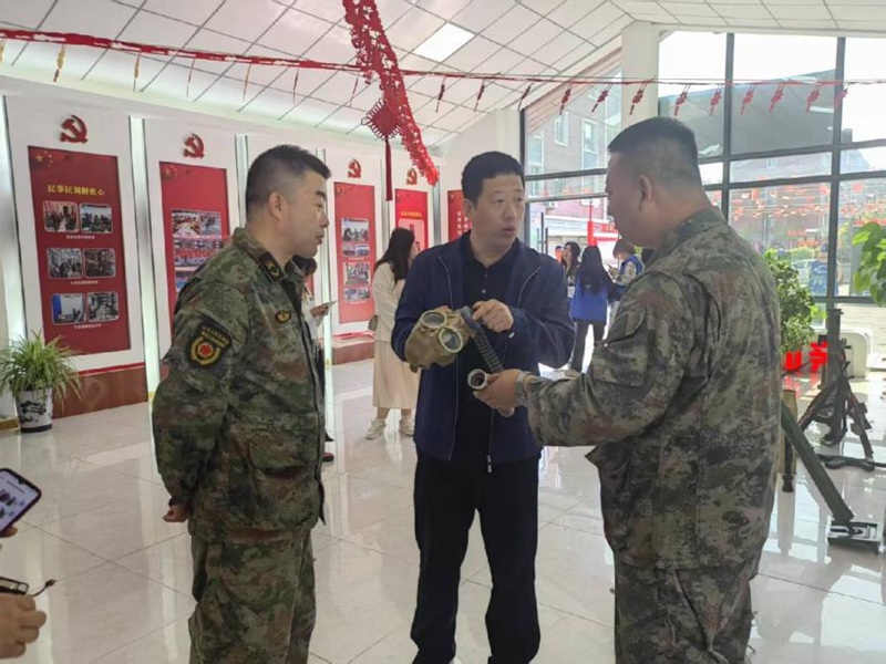 活動現場,仿真軍事裝備整齊陳列,吉林省佳德國防教育基地董事長趙振平詳細介紹裝備性能、作戰用途及國防意義。