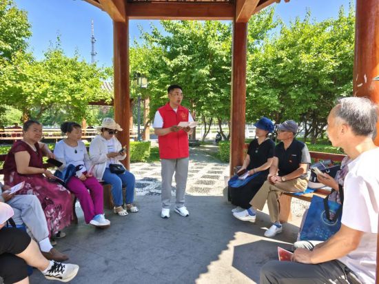 9時,在響鈴公園的一處涼亭,司法局東三街道司法所工作人員對著圍坐的市民開展一場別開生面的“板凳課堂”。工作人員圍繞《中華人民共和國民法典》,摒棄傳統的“書面語”說教,采用親切的“聊家?!狈绞?,通過案例解析、現場答疑等方式,講解日常生活中能夠用到的法律知識,用真實故事引發共鳴,引導群眾用法律思維處理家庭事務。在宣講的同時,工作人員同步發放移風易俗倡議書,向群眾倡導婚事新辦、喪事簡辦等文明風尚,讓文明家風與法治觀念入腦入心。