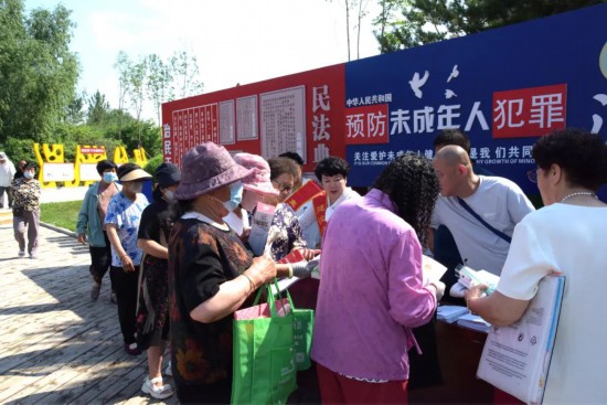 活動一:法治宣傳面對面 解惑答疑零距離。6月26日上午,洮南市司法局社區矯正中心依托法治文化公園,搭建法律咨詢服務平臺。聯合司法所、法律援助中心、律師事務所等專業力量,重點圍繞《社區矯正法》《刑法》等法律法規進行普法講解,并借勢“國際禁毒日”契機同步開展禁毒宣傳,有效提升群眾識毒防毒拒毒意識?;顒蝇F場氛圍熱烈,共發放法律宣傳資料、法治主題水杯、法治主題雨傘等法治宣傳品500余份,吉林楊潤東律師事務所商律師對過往群眾提供一對一法律咨詢,現場解答群眾法律咨詢10余件。
