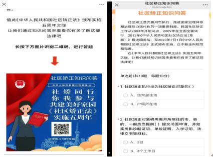 活動三:知識問答激活力 線上競技漲本領。依托“法治洮南”微信公眾號平臺開展社區矯正相關法律知識線上問答,試題涵蓋《中華人民共和國社區矯正法》《社區矯正法實施辦法》等法律法規條款。通過互動答題形式,既提升了社區矯正工作人員的業務水平,也有效增強了公眾的參與感與法治意識。