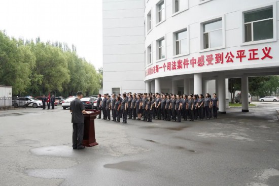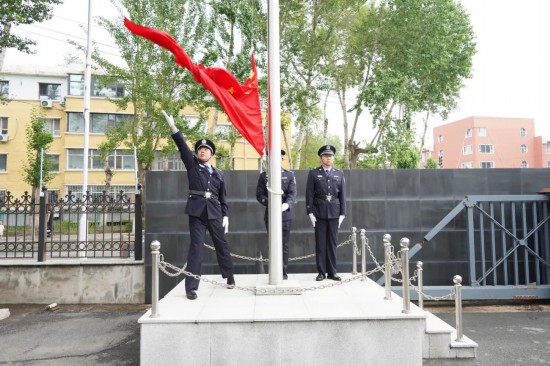 上午八點三十分,全體干警整齊列隊,舉行莊嚴的升國旗儀式。由司法警察大隊組成的護旗方隊,身姿挺拔、目光堅定,邁著鏗鏘有力的步伐,護衛著五星紅旗入場。隨著高亢激昂的義勇軍進行曲響起,全體干警莊嚴肅立,高唱國歌,五星紅旗冉冉升起,在晨風中高高飄揚。這一刻,全體干警的心中都涌動著對黨和國家的真摯熱愛和崇高敬意。