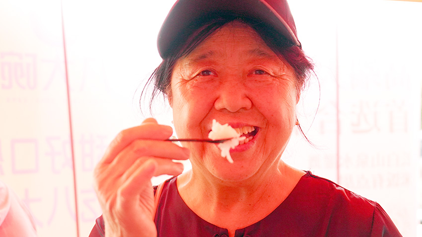 沈陽市民現場品嘗大米。李成偉 攝