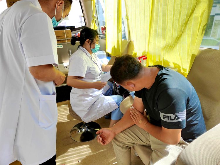 活動現場,志愿者在醫護人員的引導下依次有序進行信息登記、血壓測量、血液初篩、血型檢驗等流程。盡管天氣達到32℃,但現場秩序井然,氣氛熱烈而溫馨?!白鳛辄h員干部,我更要帶頭獻血?!贝笪鞔宕鍟浶虾}埦`放出燦爛笑容。黨員干部帶頭,群眾積極響應,是亮兵鎮的良好風尚。