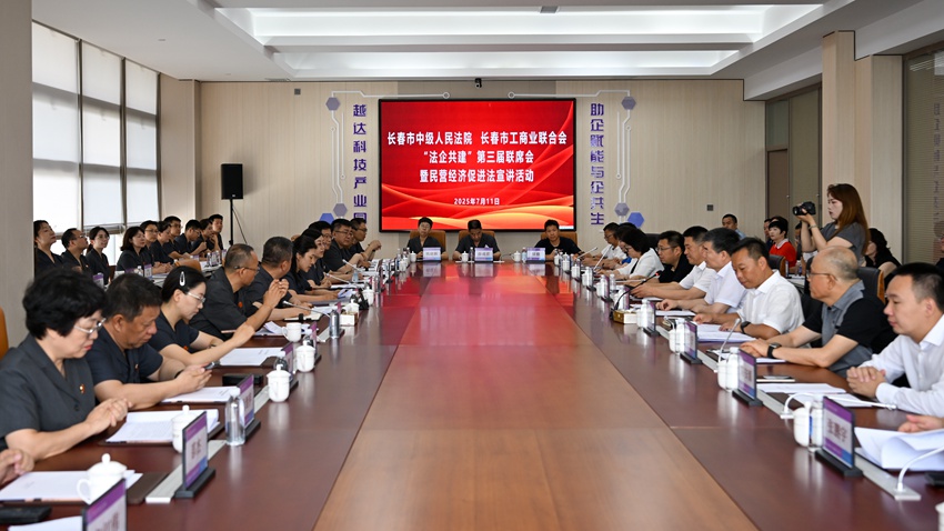人民網長春7月11日電 (記者王海躍)為持續優化法治化營商環境,護航民營經濟高質量發展,7月11日,長春市中級人民法院與長春市工商業聯合會舉辦第三屆“法企共建”聯席會暨民營經濟促進法宣講活動,通過實地調研、法律宣講與座談交流,進一步凝聚法企共識,共繪發展新篇。長春市中級人民法院副院長侯海霞主持活動。
