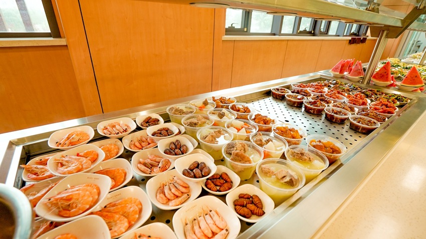 每一處細節藏著“家”的暖意,正是老有所養的生動寫照:獨立浴室24小時熱水、公共助浴床貼心服務、高頻消毒的酒店級床品、定期免費理發服務……1800平方米膳食中心內,名廚現烹南北風味,食材可追溯、營養表清晰,營養師為慢性病患者定制餐譜,術后康復餐精準適配。這份從舌尖到心間的溫度。