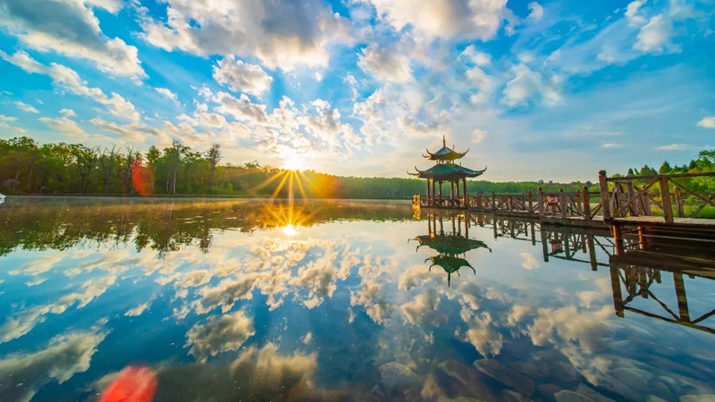 ——森氧漫游:沐氧園是林間休閑的首選地,1700米林中甬道串聯11處特色涼亭,負氧離子含量超2萬個/立方厘米,漫步其間宛如“洗肺”;園內還設有梅花樁、高空秋千、林間索橋等拓展設施,動靜結合享森林野趣。