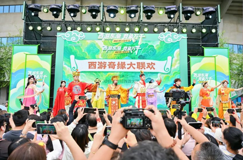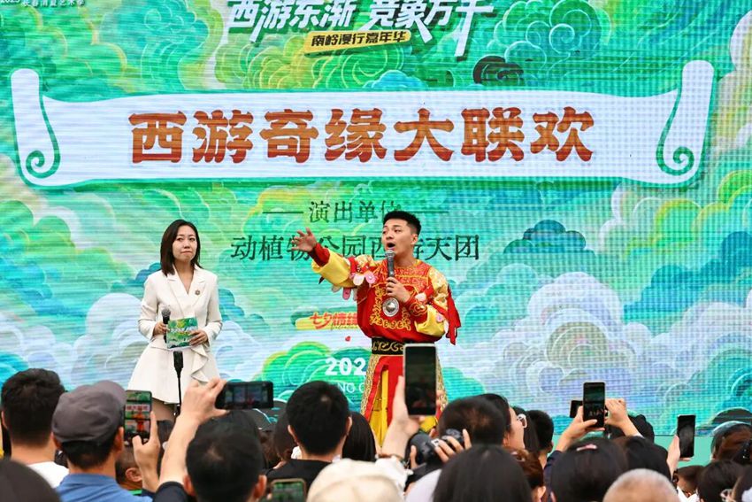 雪餅猴靈巧轉動手絹,唐僧深情獻唱,豬八戒大秀才藝……“西游天團”帶來的既神通廣大又風趣幽默的演出,在七夕當天讓柔婉的浪漫與沸騰的人潮相撞,現場的精彩根本讓人挪不開眼。