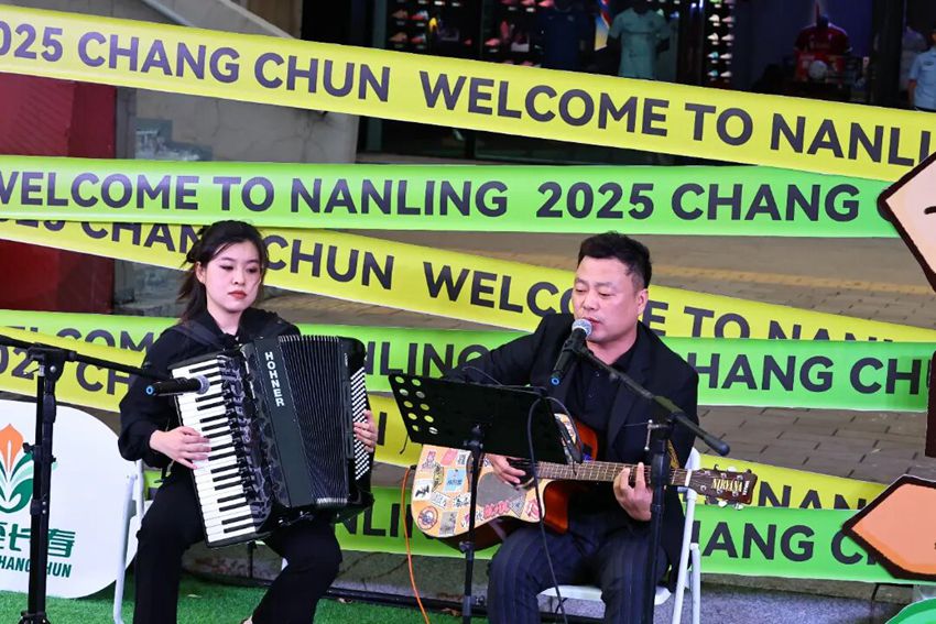 在主舞臺不遠處的長春文旅街頭音樂會,更是氛圍感拉滿。隨著一首首優美動聽的音樂響起,舞臺燈光溫柔亮起,觀眾自發舉起手中的熒光棒,點點熒光隨著音樂節奏輕輕搖晃,這場戶外“音樂會”讓人們瞬間沉浸在愉悅的音樂氛圍里。