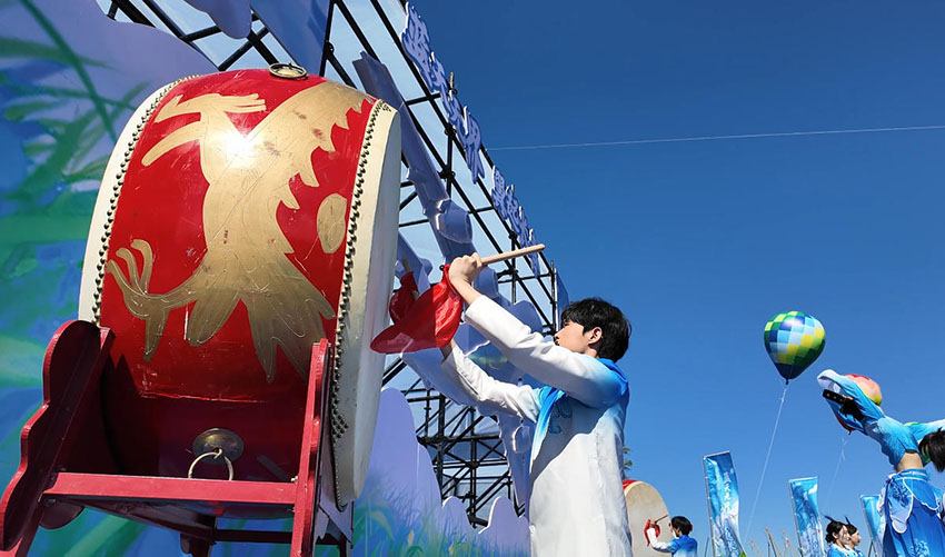 上午9點30分,開園儀式在一場激昂澎湃的鼓舞表演中拉開帷幕,鼓點鏗鏘盡顯航空人的昂揚斗志,舞者身姿矯健,似雄鷹振翅,完美詮釋了“逐夢藍天”的航空豪情,更營造出喜慶歡騰的開園氛圍?;顒蝇F場,長春航空展系列文旅活動宣傳片重磅發布,航空嘉年華及多條旅行研學線路首次亮相,直觀展現了長春“以航為媒、以旅興城”的發展思路。