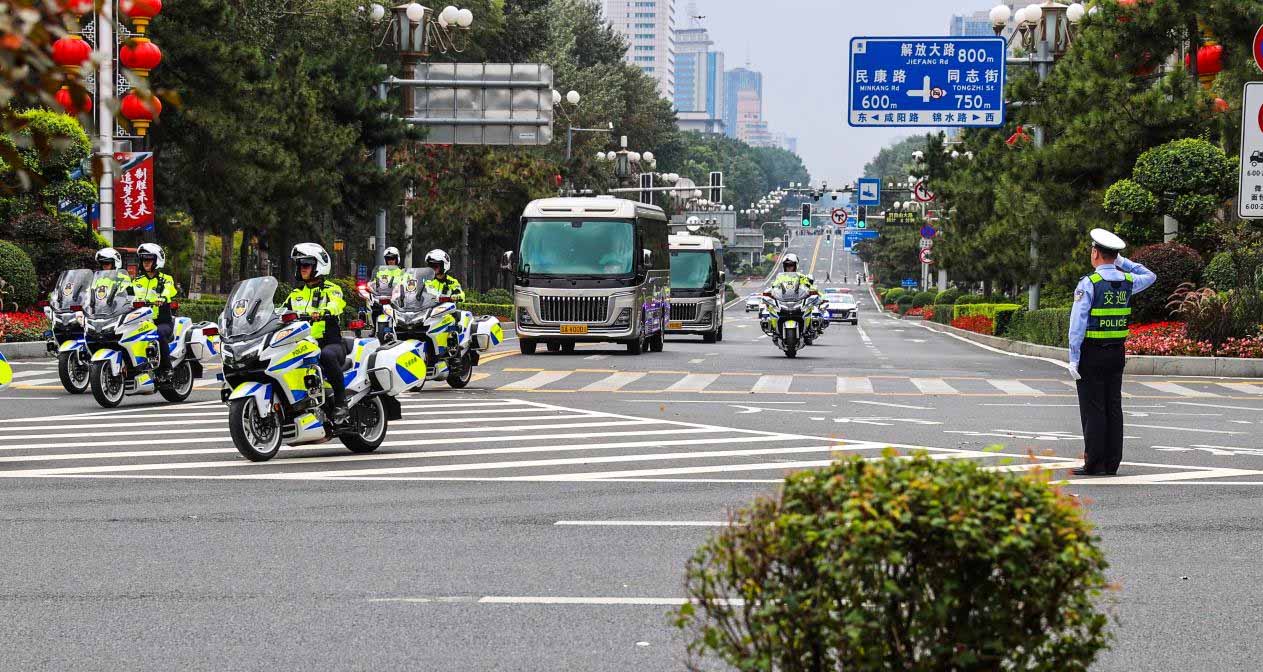 在警車和15輛交巡鐵騎前導護衛下,戰旗車隊一路莊嚴前行。沿途經過的吉林大路、解放大路、人民大街等主要街路兩側,眾多市民群眾夾道迎接戰旗回家。修繕一新的長春歷史建筑群見證了滄海桑田、時代變遷,車隊在新民大街往返巡行,在人民廣場環繞一周,以江山無恙、今更勝昔的盛世景象告慰先烈英靈。