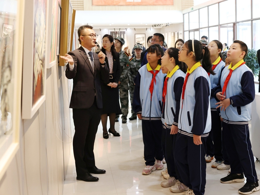 活動創新采用“美術展+思政課+展館研學”三維聯動的形式,包含吉林省“紀念中國人民抗日戰爭暨世界反法西斯戰爭勝利80周年”退役軍人主題藝術作品展白城巡展;“‘美’力思政、畫中英雄”大中小美育思政課;“國旗下感黨恩、展館內聚同心”鑄牢中華民族共同體意識思政課三項內容,旨在以美為媒、以史為鑒,讓紅色精神浸潤師生心靈。