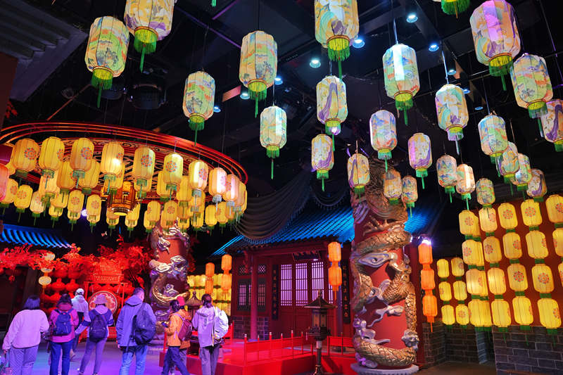 走進演藝街區,木質樓閣重施新彩,朱紅與橙黃交融映照,呈現出一幅鮮活而富有古韻的街景圖卷。街區創新采用“文化+科技+演藝”的融合模式,復原了金代市井生活場景,琳瑯滿目的商品、此起彼伏的叫賣聲,構建起虛實交織的時空場景。