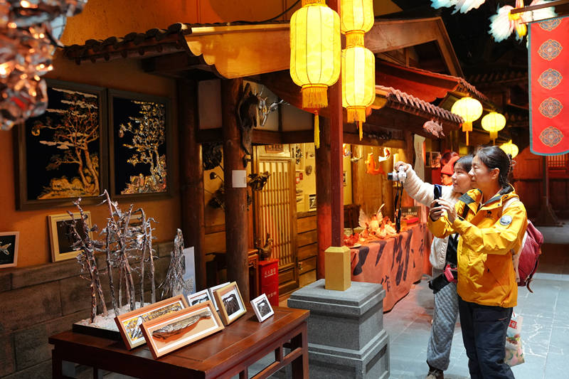 工作人員介紹,該項目以“天池祈?!睘閿⑹潞诵?,設置角色扮演互動、金代市井生活體驗、祈福儀式展演、長白山奇境探秘四大模塊,引導游客從“旁觀者”轉變為“劇中人”,實現多層次沉浸式體驗。同時,街區整合了長白山滿族文化、漁獵文化等非物質文化遺產,30余個演藝節目均取材于長白山民間故事,游客不僅可以觀賞,還能參與祈福儀式、手作體驗等互動環節,強化文化感知度。