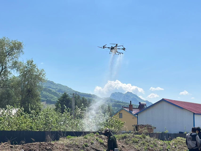 “我家有塊地沒有機耕路。今年夏天旱,果樹需要澆水。我先讓人走去地里,然后用無人機運水,一次可以運75公斤,省時省力?!?韓飛開心地說。