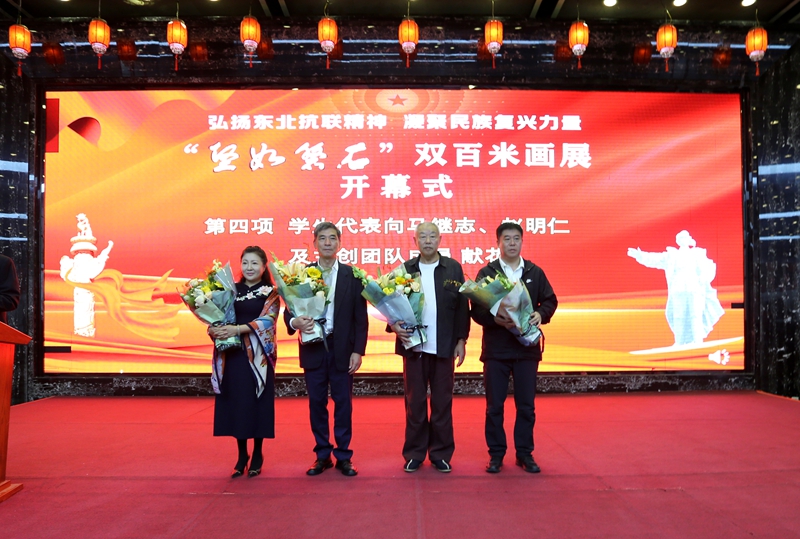 開幕式由吉林體育學院黨委副書記郭世強主持。省委宣傳部二級巡視員楊紅軍,省教育廳黨組成員、省委教育工委專職副書記方向春,吉林體育學院黨委書記董亮,黨委副書記、校長邵桂華,磐石市委常委、宣傳部部長李瑞淞,雙百米組畫主創人、人民大會堂特約畫家趙明仁先生;人民英雄楊靖宇將軍之孫、吉林體育學院客座教授馬繼志先生等領導、嘉賓出席開幕式,部分在長高校師生代表共同見證開幕盛況。