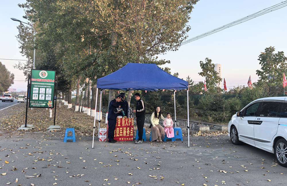 林區檢查站,已成為溫馨的休憩點,為游客們“加油充電”,暖意融融。鋪著格子桌布的餐桌、擺放整齊的木椅、窗邊冒著熱氣的熱水箱和免費紙杯、Wi-Fi、衛生間等,細節處盡顯用心用情,全方位為游客提供周到的服務。室內溫暖如春,室外熱情似火?!皝?,大姐,給您續上熱水!”一位防火員正俯身從粉色保溫壺中,為一位女游客手中的保溫杯添熱水。在另一處停車場,一群橙色制服的消防員忙著用保溫壺為游客倒水,陽光灑落,水汽氤氳,歡聲笑語間,防火知識的種子已悄然播撒。