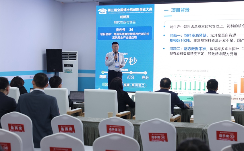 本屆大賽,參加創新賽現代農業與食品賽項的班志彬,帶來“禽用高精度智能營養代謝分析系統及全產業鏈應用”項目,為養殖業“節糧降本、綠色高效”發展提供關鍵支撐。